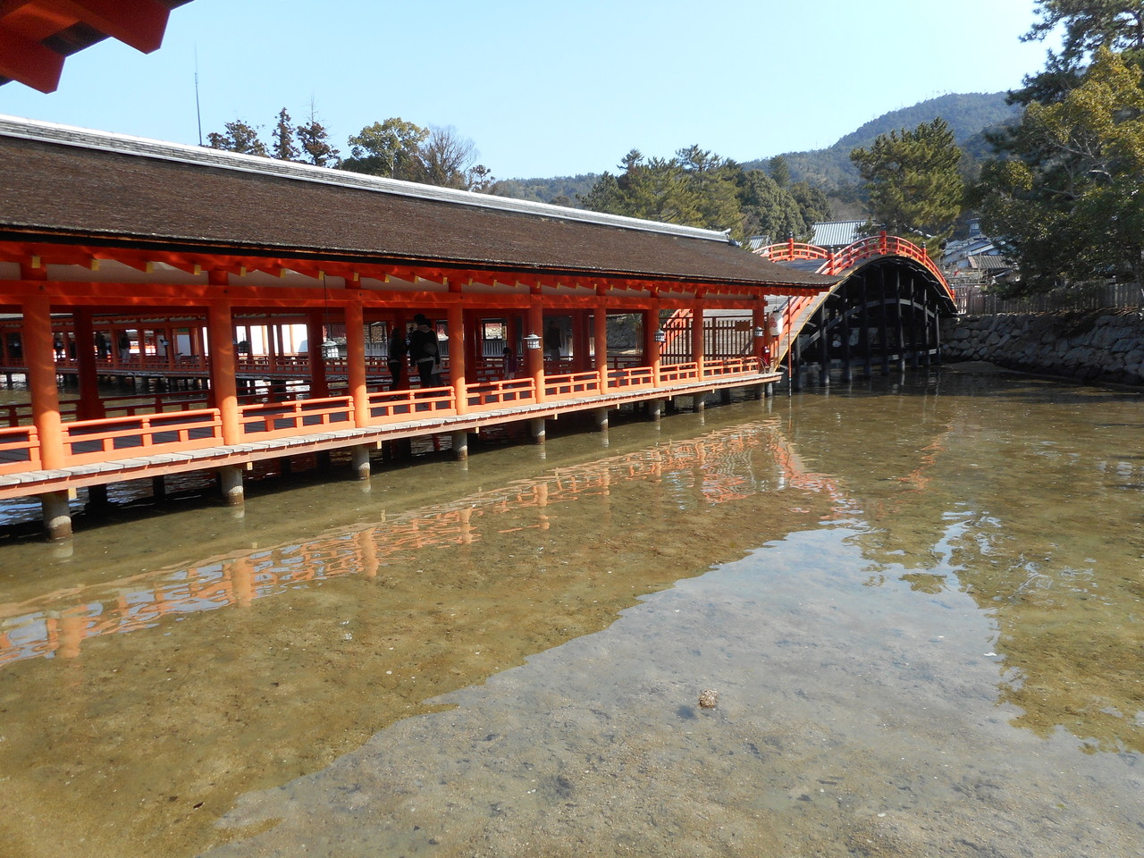 満潮時の厳島神社ははまるで海に浮かんでいるような姿が美しく、干潮時は神社の床下が見えたり大鳥居を間近で見ることができます。当日に限り再入場可なので、出来れば満潮時と干潮時の両方行くことをオススメします。