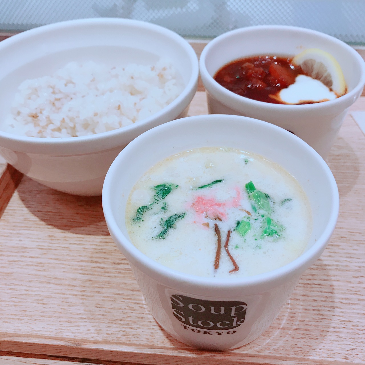 ほっこりしたいときにはスープストックですね。東京にはたくさんお店がありますね。ここで春野菜のクリームスープとボルシチをいただきました。私は春野菜が気に入りました。ごまごはんによく合います。ちょっと寒い日だったので温まりました