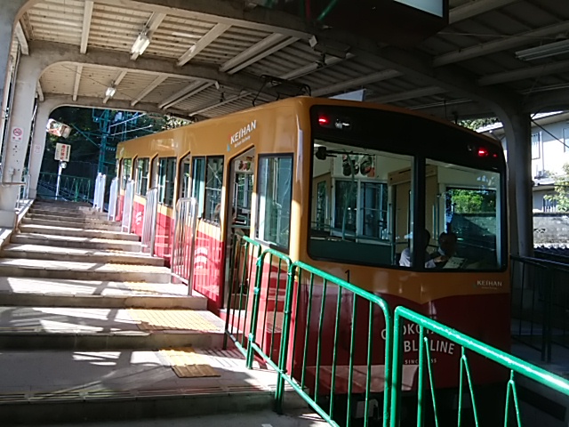 京阪電車が運営するケーブルカー。石清水八幡宮にお参りする際に、往路だけ、ケーブルカーを使って楽しちゃいました。