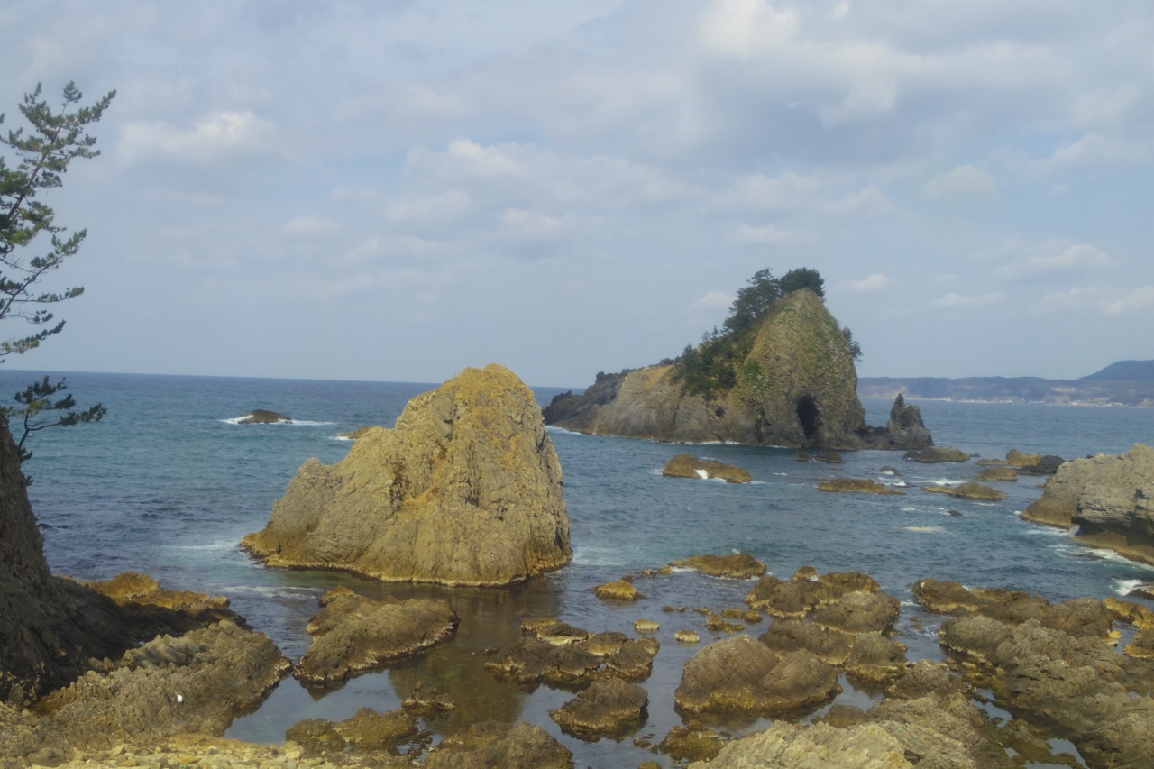 森山海岸には象岩やガンガラ穴などがあります。場所は十二湖駅の北方向の海岸沿いになりますが、国道も鉄道もトンネルで通過してしまう部分です。近くへ行くには注意が必要です。海岸には人の姿は見当たりませんでした。