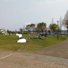 公園自体には桜の木は少ないが沼沿いに設けられた散策路に桜が植樹され桜鑑賞を楽しめた。