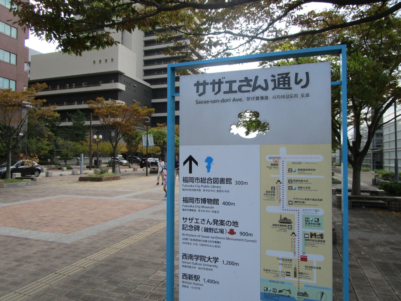 福岡タワーなどに観光に行く際、通りました。道はきれいに整備されていて、いたるところにサザエさんをかたどったパネルやオブジェなどがあります。親しまれているアニメのゆかりの地だということを感じさせてくれました。