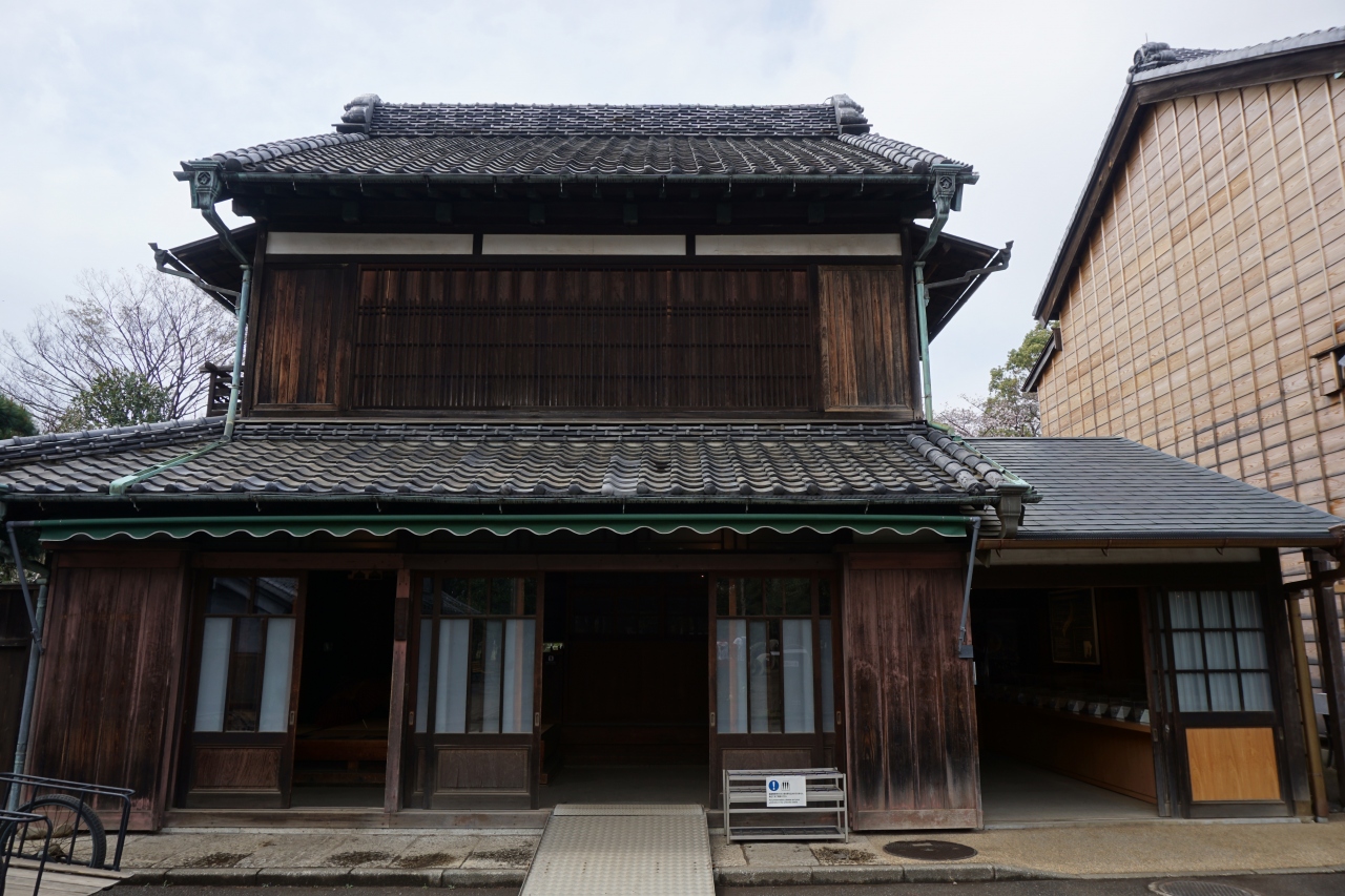 川野商店は、一見すると商店とは思えないような構えですが、一階の扉が広く開いているのはやっぱり商店の建て方でしょう。中に入ると畳の上り框が商売の場になっていて、和傘が置いてあると当時の雰囲気がそこそこ想像できますね。