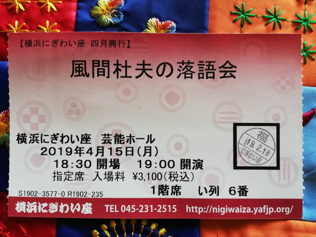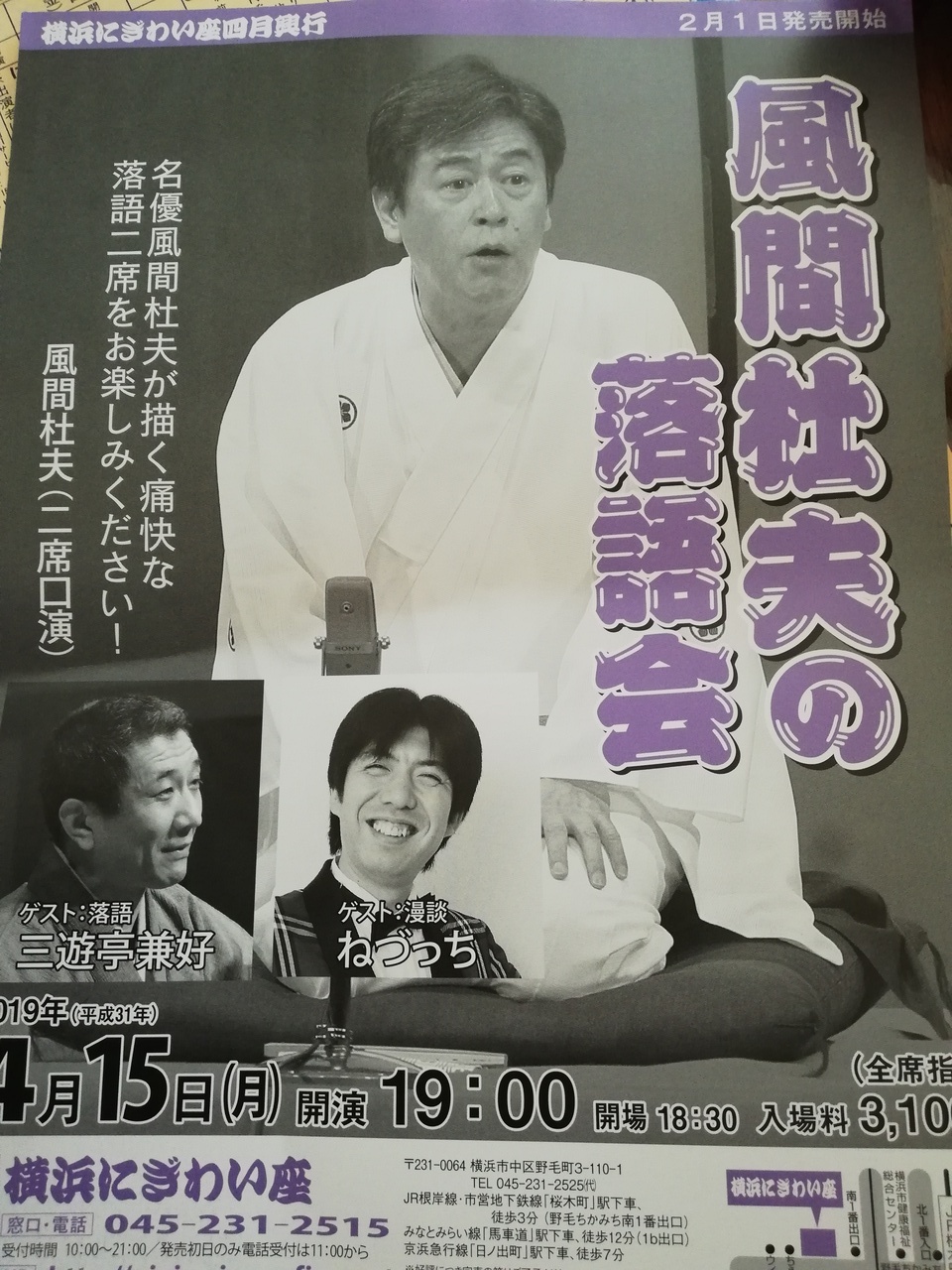 『風間杜夫の落語会』の前売り券をネットで購入しました。