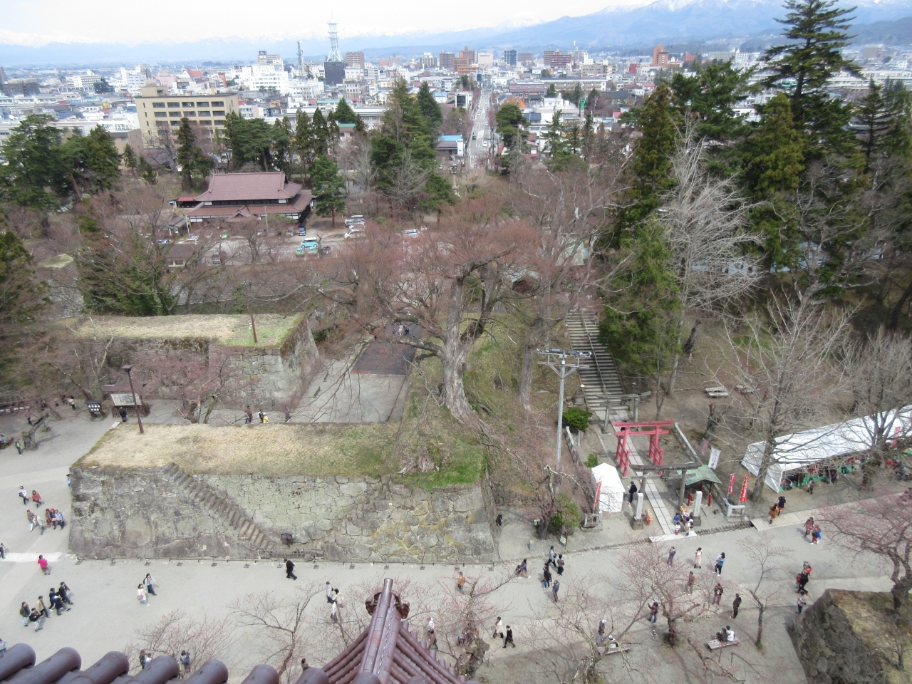 4月の中旬、前日に桜の開花宣言があった日でした。少々はやいですがお花見を楽しむひとや、天守閣を目指す観光客でたくさんのひとで賑わっていました。立派な石垣が印象的で、中にはハートの形をしているのを見つけることもブームだとか。観光案内所では無料のガイドをしてくれるようでした。