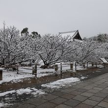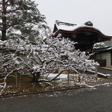真っ白な雪が、名物の御室桜なら枝にも