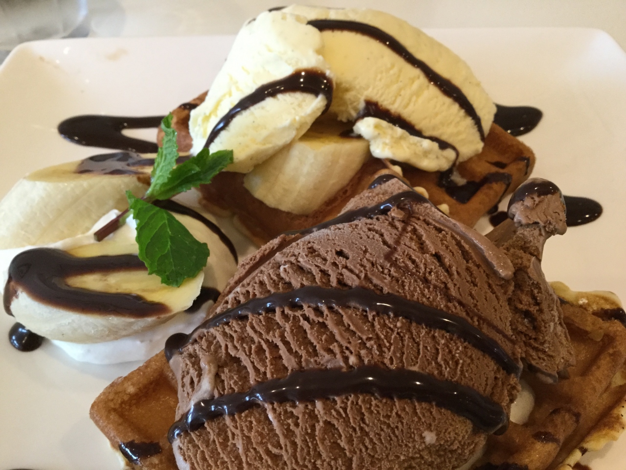 スイーツは、バナナとチョコレートのワッフル(700円)にしました。