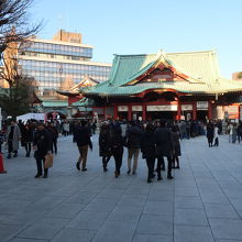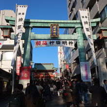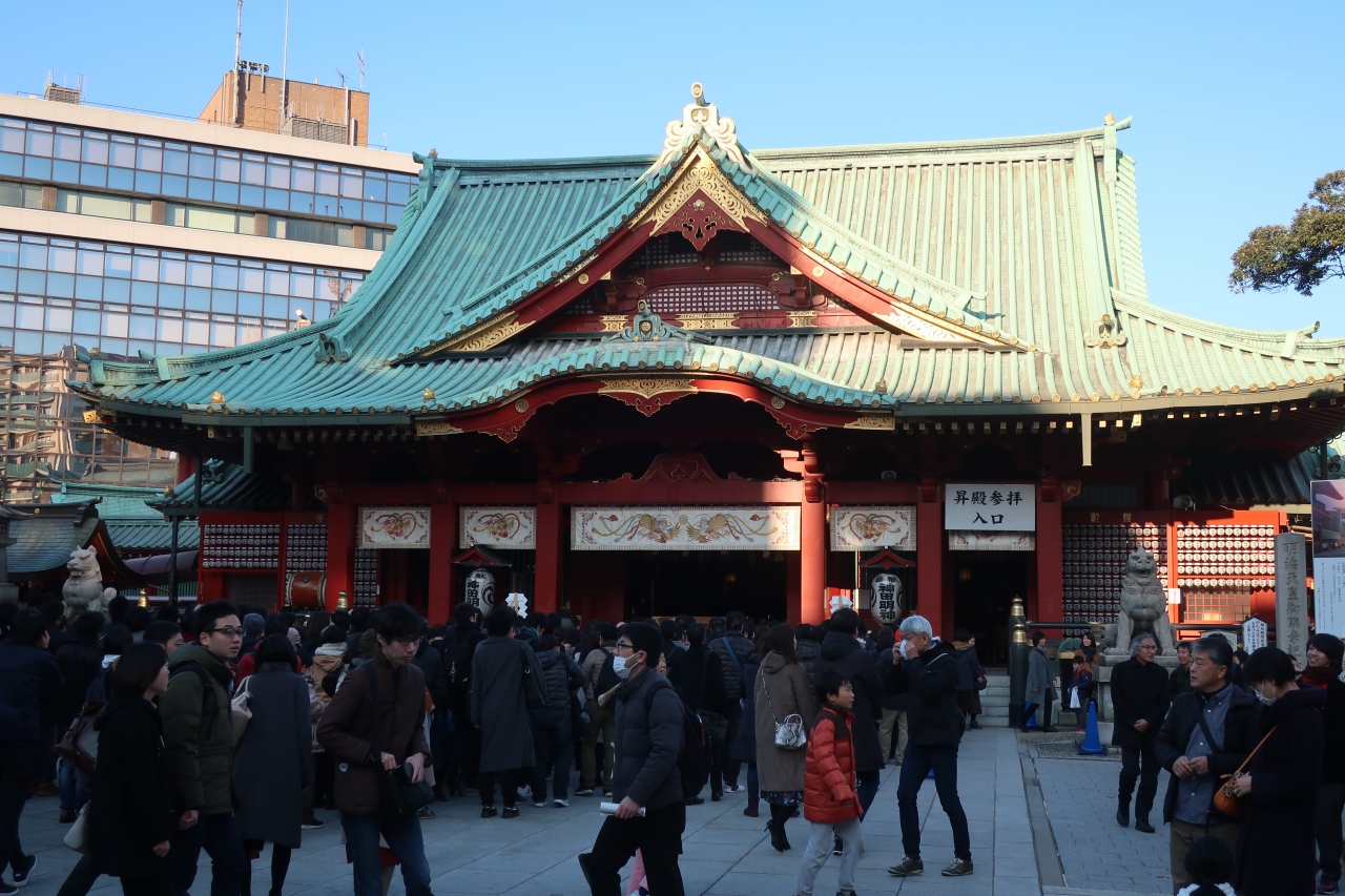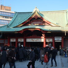 江戸城の鬼門に位置する江戸総鎮守が神田明神です。大黒様、恵比寿様、平将門を祭神として祀る神社で、大手町、丸の内を氏子に持つ神社でもあることから、正月明けの1月前半は背広を着た人が沢山参拝に来られとても混んでます。御神殿の前は並ばないとお参りできない程です。