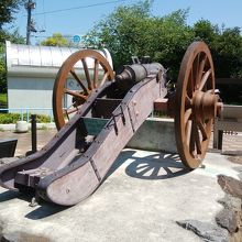 運河の手前にある小さな公園に鎮座する大砲・砲台です。