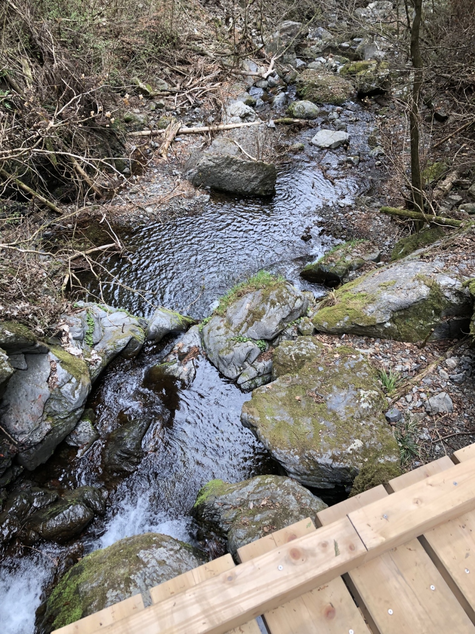 鍾乳洞でちょっとした冒険をした後、車で五分くらいのところに大滝があります。いく途中、小滝も見れますが、水は流れていませんでした。道幅は車一台が通れるくらい、ところどころにスペースは取られていますが、自信のない方にはオススメしません。とくに駐車場はありません。道の行き止まりに車を停めて、大滝を目指します。看板があるので、すぐにわかります。車で留守番をしていた犬たちは大喜びで山登り。大滝はそれなりの迫力がありました。