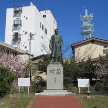 野口英世青春通り沿いにある、ちょっとした広場です。営業しているのか?していなのか?と思うような店舗が数店あります。奥にある野口英世の立派な銅像が印象に残ります。バス停前なので、バス待ちのひとが休憩に利用していました。