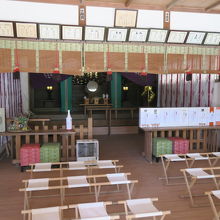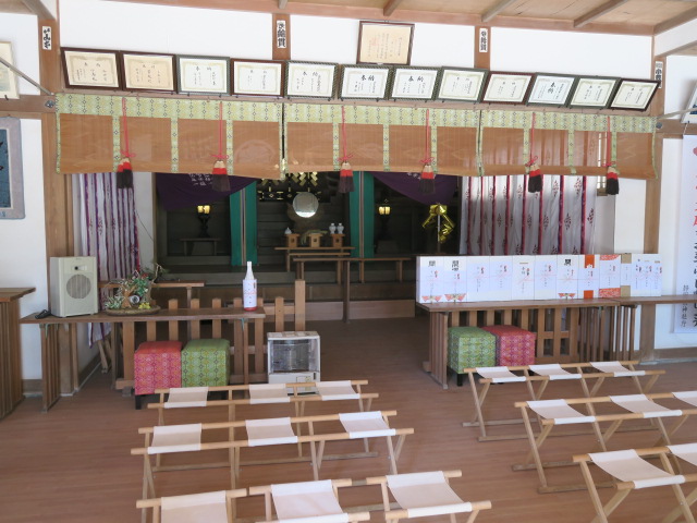 本殿は整えられた感じであまり歴史観は感じない外観でした。中は神事の準備が行われており、綺麗に椅子が並べられており、神社の雰囲気がとても良かったです。