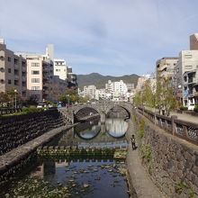 この有名な石のアーチ橋は中島川に架かっていて、江戸時代に作られた橋として重要文化財指定も受けています。