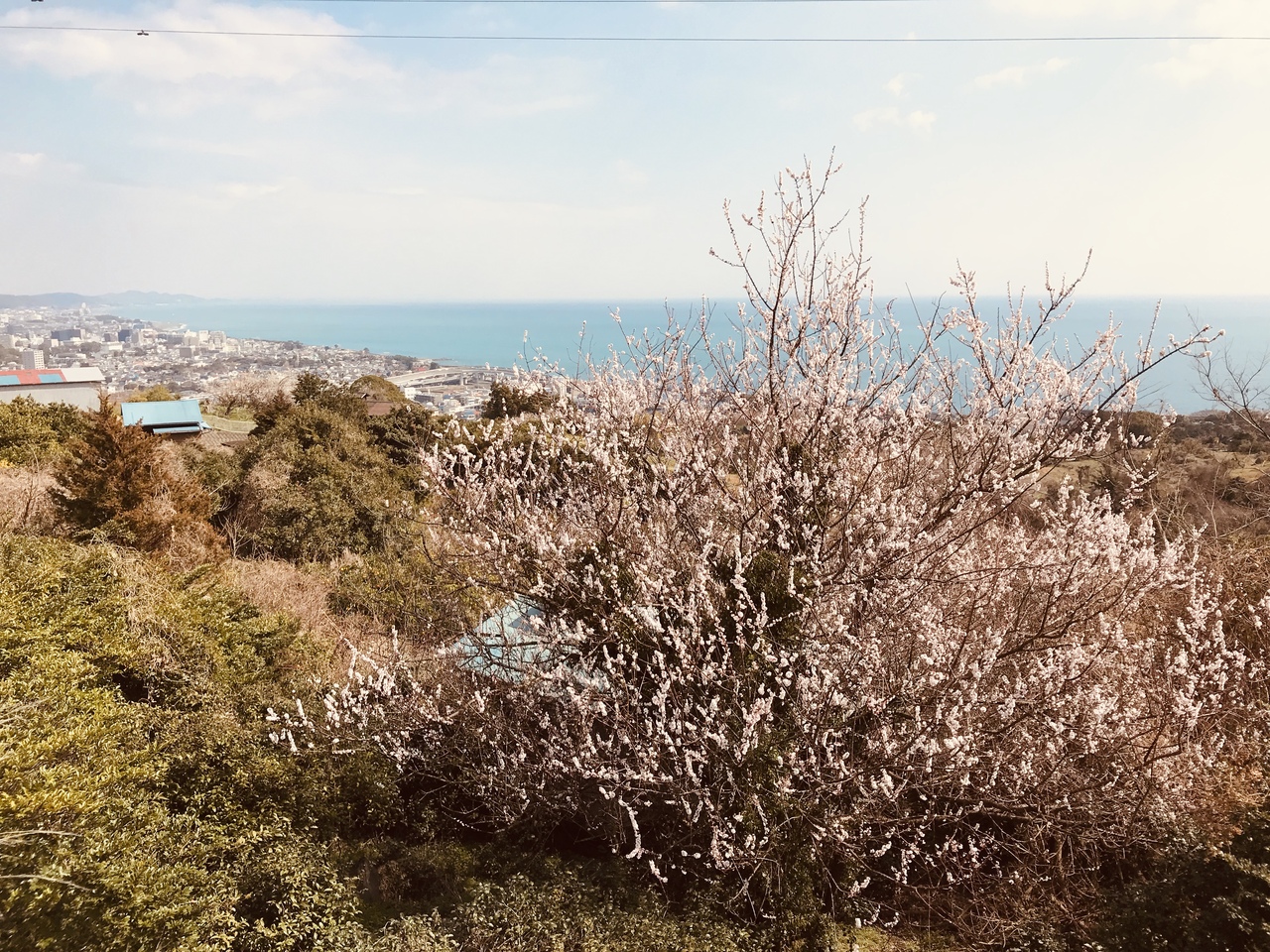 みかん畑の道を歩き、途中途中で、桜と相模湾の綺麗な眺望を眺めながらの登り道だった。