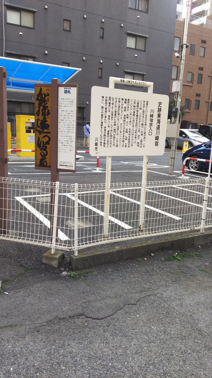 川崎宿の入り口があったと言われる場所です。いまは駐車場になっています。