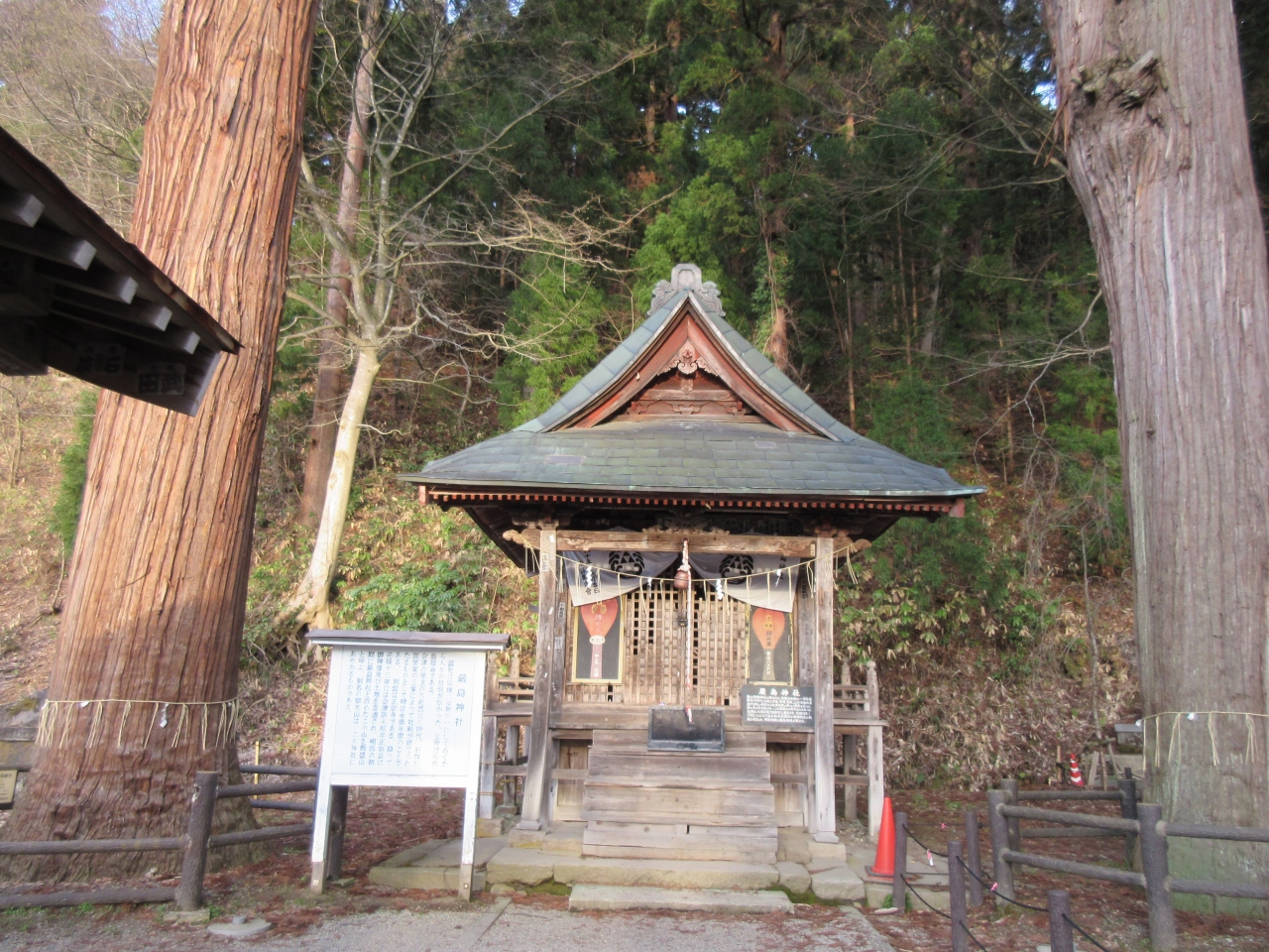 飯盛山の中腹、戸ノ口堰洞穴の脇になります。社殿両脇の立派な杉の木が印象的です。創建は室町時代初期で、ふるくから会津鎮護の神として信仰の対象となっていました。小さく無人の神社ですが、ここから現在も変わらず会津を見守っているのだと思いました。