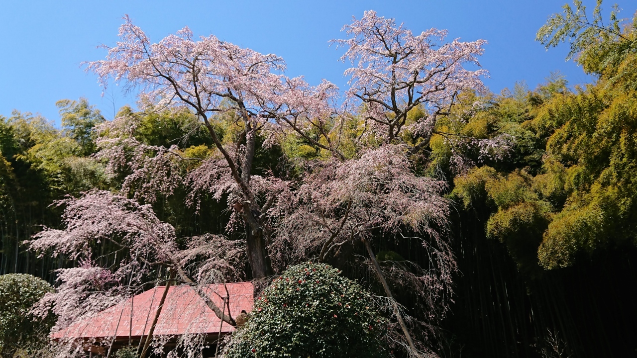 僧侶であり画家の雪村が晩年を過ごした場所だそうです。雪村庵の手前の民家近くに駐車場があり、そこから少し歩いた場所にあります。老木の桜、梅と周囲の竹林のコントラストが情緒を醸し出していて、きれいでした。