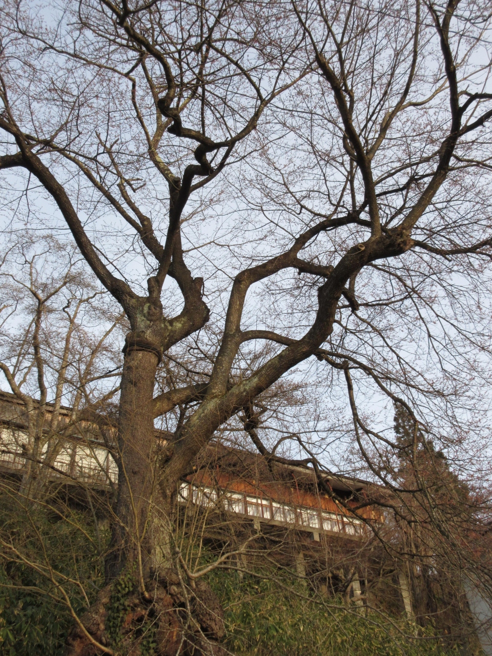 飯盛山の中腹、白虎隊記念館の前あたりになります。訪れたのは、鶴ケ城で桜の開花宣言があった日。会津の街でも、あちこち桜は咲いていましたが、残念ながらこの太夫桜はまだでした。二代目といえども、会津の二大老樹という。このまま枯れることなく、咲いたころに再訪したい。
