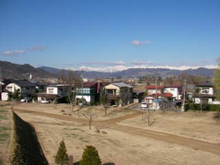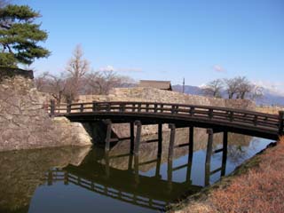 旧松代駅のホームの先に松代城跡があり、千曲川から引いた堀と、石垣が復元されています。橋を渡ると本丸御殿の跡に出て石垣で囲まれいて櫓に上ると周囲が見渡せて、北アルプスの鹿嶋槍ヶ岳から白馬岳の稜線が見えます。