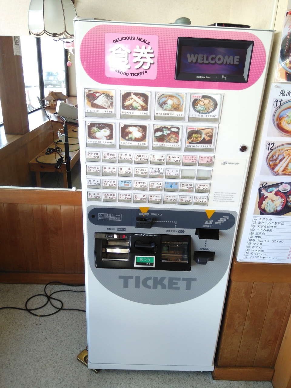 着席する前に店舗入口の券売機で食券を購入します。駐車場前に立地した店舗なので日帰りのお客も利用していました。内容からすると割高な店舗でした。