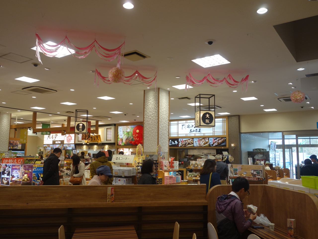 上り線と下り線で共通のサービスエリアです。したがって,上り用のお土産も,下りようのお土産も,どちらも買うことが出来ます。便利です。お店の数もおおい。イートインも選択肢がたくさんあります。どのお店も新設です。新名神で第一のサービスエリアでしょう。