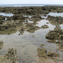 久米島北部の海岸にある潮だまりです。海岸に入る入り口に説明板があり、50種類ほどの魚の写真と名前が記されています。潮だまりに行くと小さな魚が沢山いて、見ていると時間を忘れてしまいます。潮だまり近くに行くには、ごつごつとした足場の悪いところを歩く必要があるので、歩きやすい靴が良いでしょう。