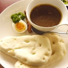 これまでの海自カレーはライスが付いていたが、当店ではナンが付いた。カレーに浸しながら食べるナンは矢張り美味しい。
