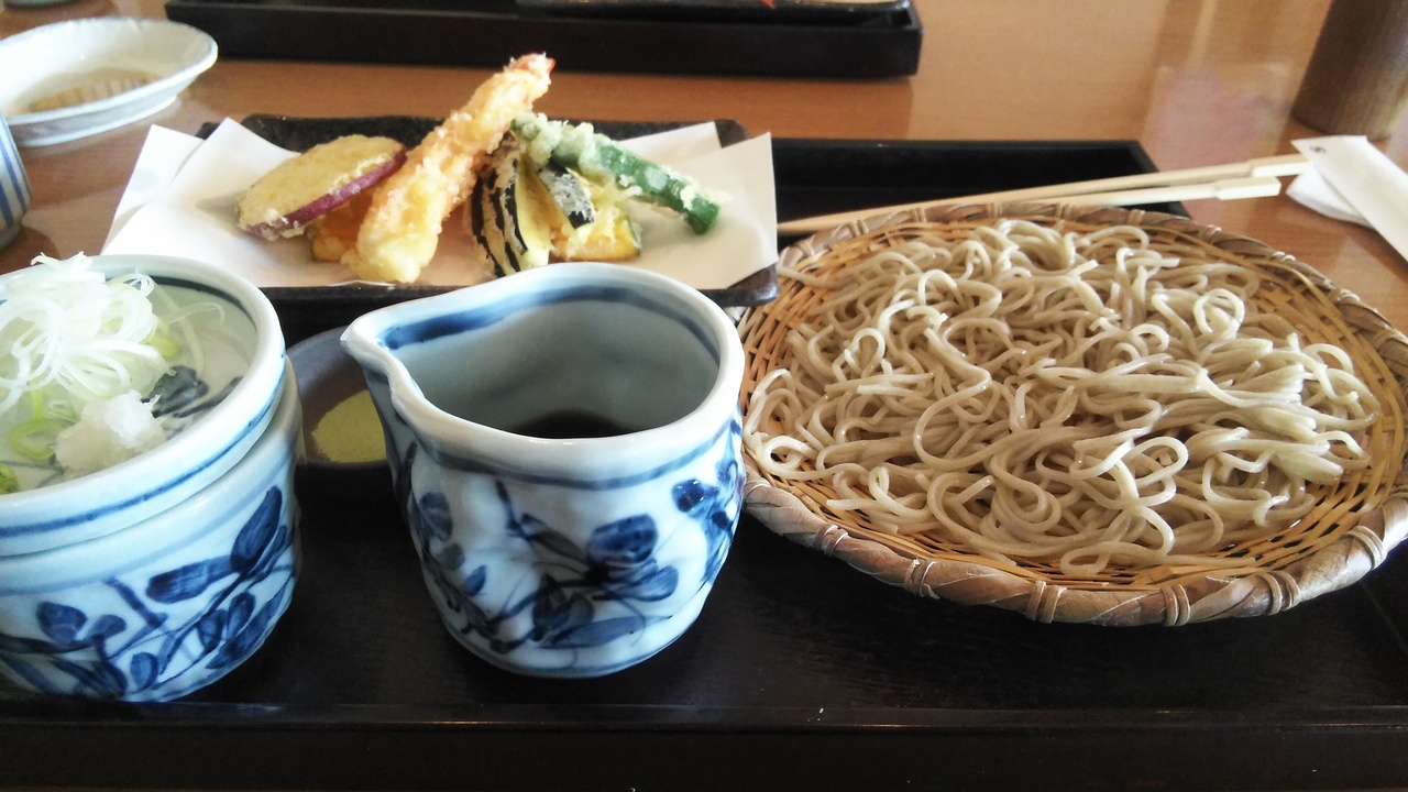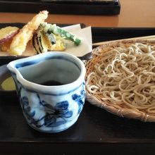 はしし唐、かぼちゃ、えびなどでカラッと上がっていておいしかったです。おそばは薄味なのか細い感じで、するっと口の中にはいりました。付け合わせのしょうが醬油のお漬物がおいしくて、売っていたのでお土産にしました。店員さんの対応もよく、飛び込みで選んだ割には当たりでした。