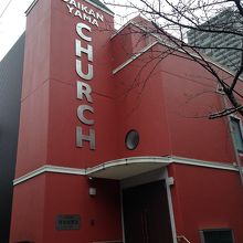 代官山という街のイメージに合わせたということでしょうか大きくDAIKANYAMA CHURCHと書かれていたりレンガ造りでもないのに赤茶けた色といい斬新な教会です。