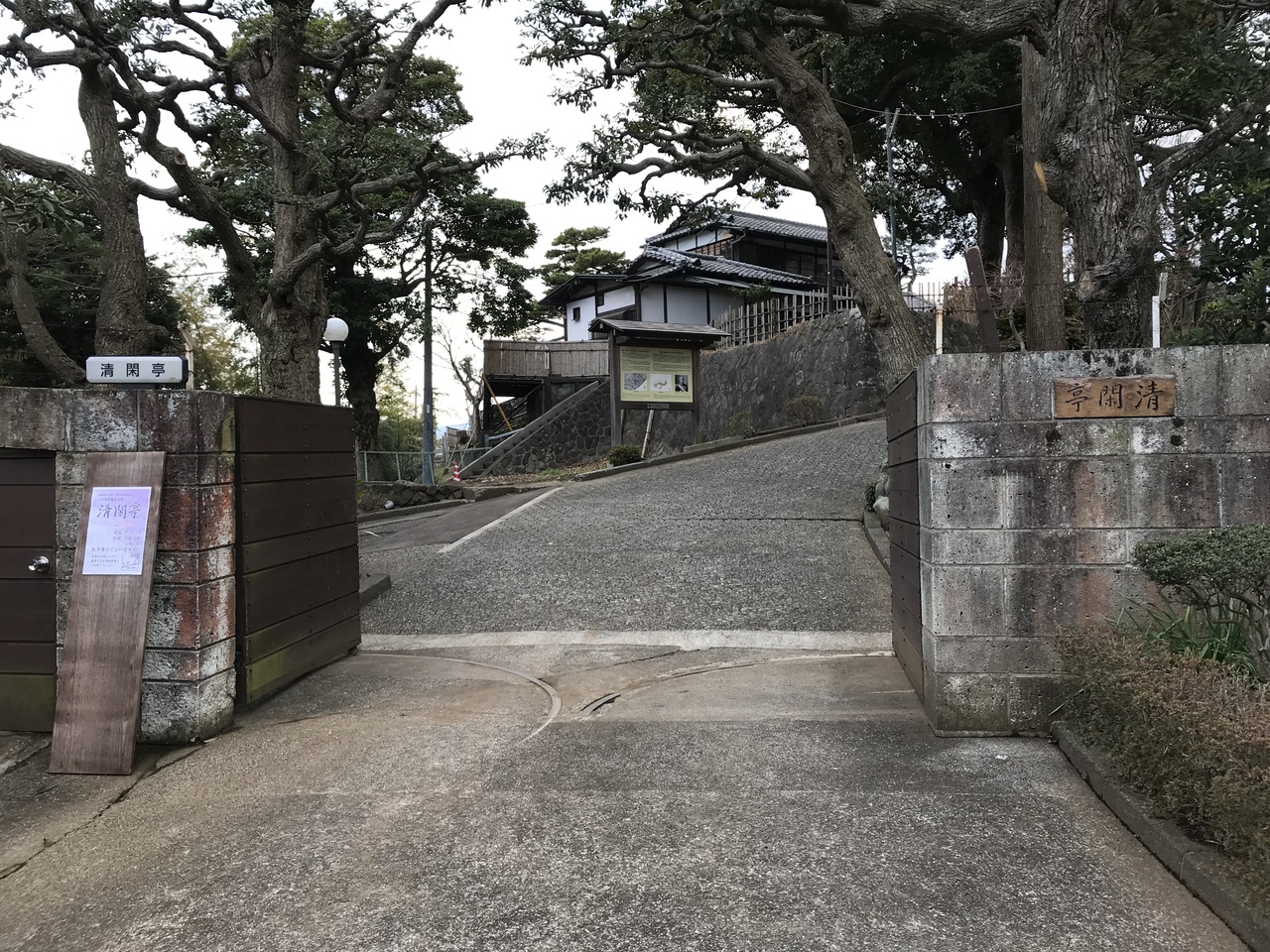 清閑亭は、小田原城内の三の丸土塁跡上に建てられ、土塁跡・堀跡の遺構が残っている。