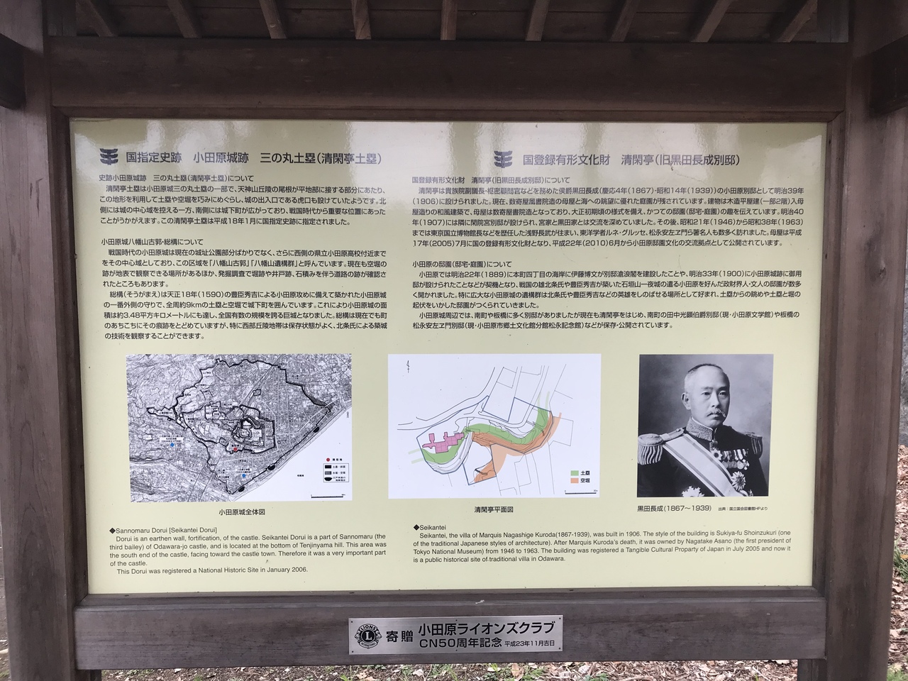 小田原城跡:清閑亭、三の丸土塁跡に