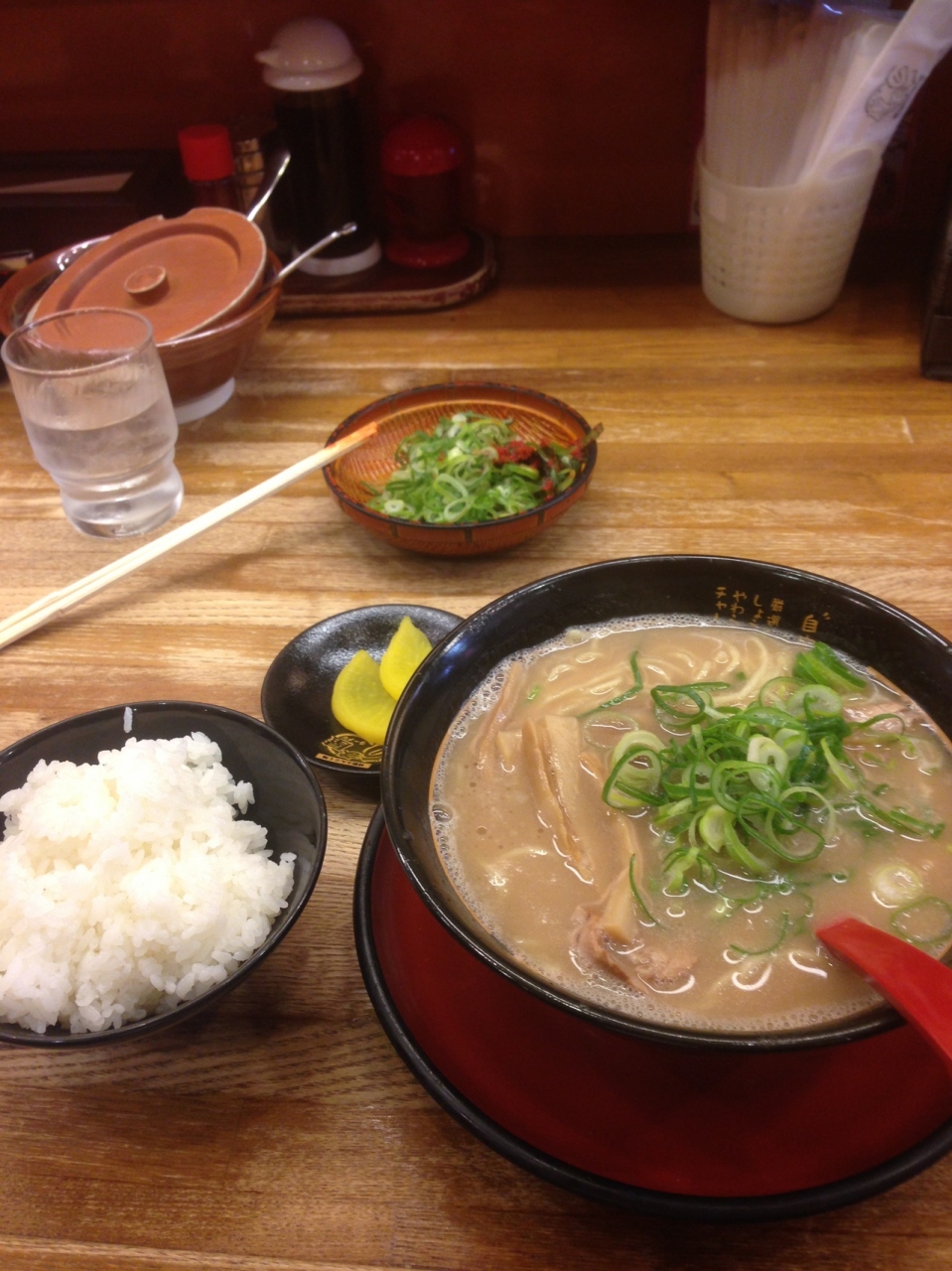 うま屋は名古屋のラーメンチェーン店ですが、豚骨が本格的錦効いています。ここの看板メニューはチャーハンのようですが、少しお高いのでここでは、平日限定の580円ラーメンセットを注文しました。こってりラーメンに九条ネギお代わりが出来るのはお得です。