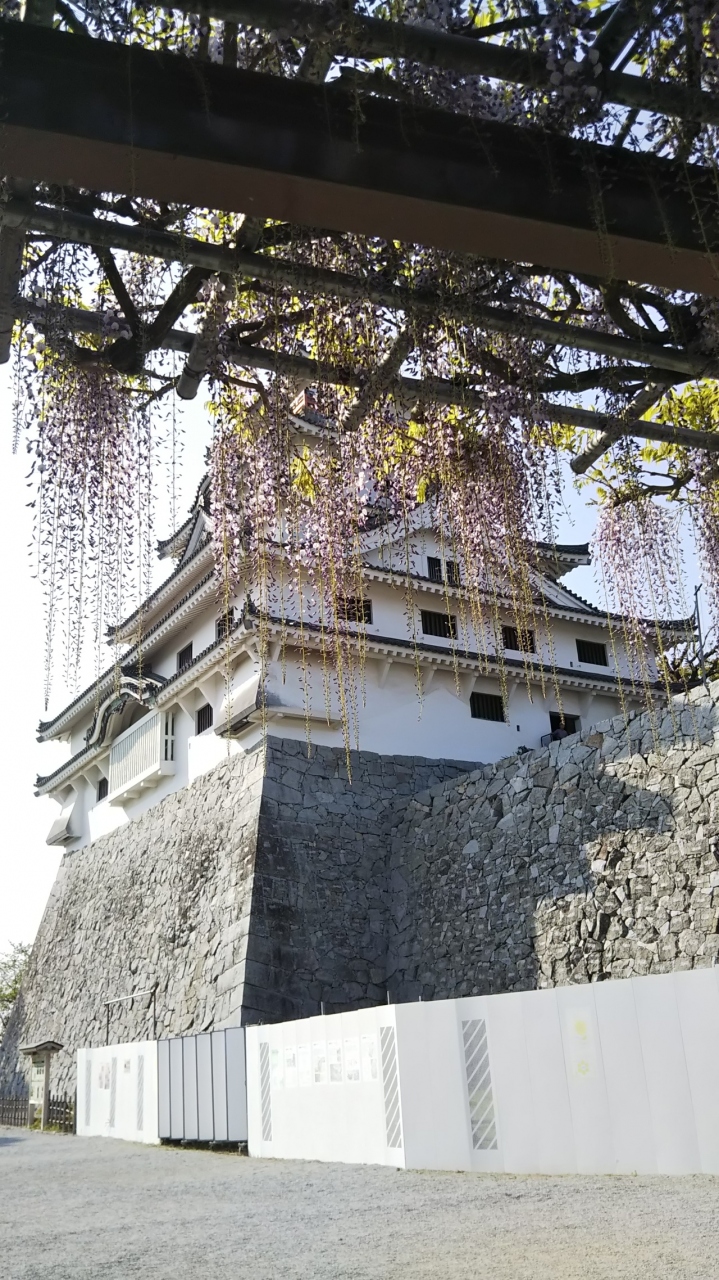天守閣がリニューアルされて初めて行きました。エレベーターやQRコードのゲートが導入されていました。展示も見やすく整理され、市街地の眺めが素晴らしかったです。藤棚の紫の花が満開で石垣とのコントラストが見事でした。
