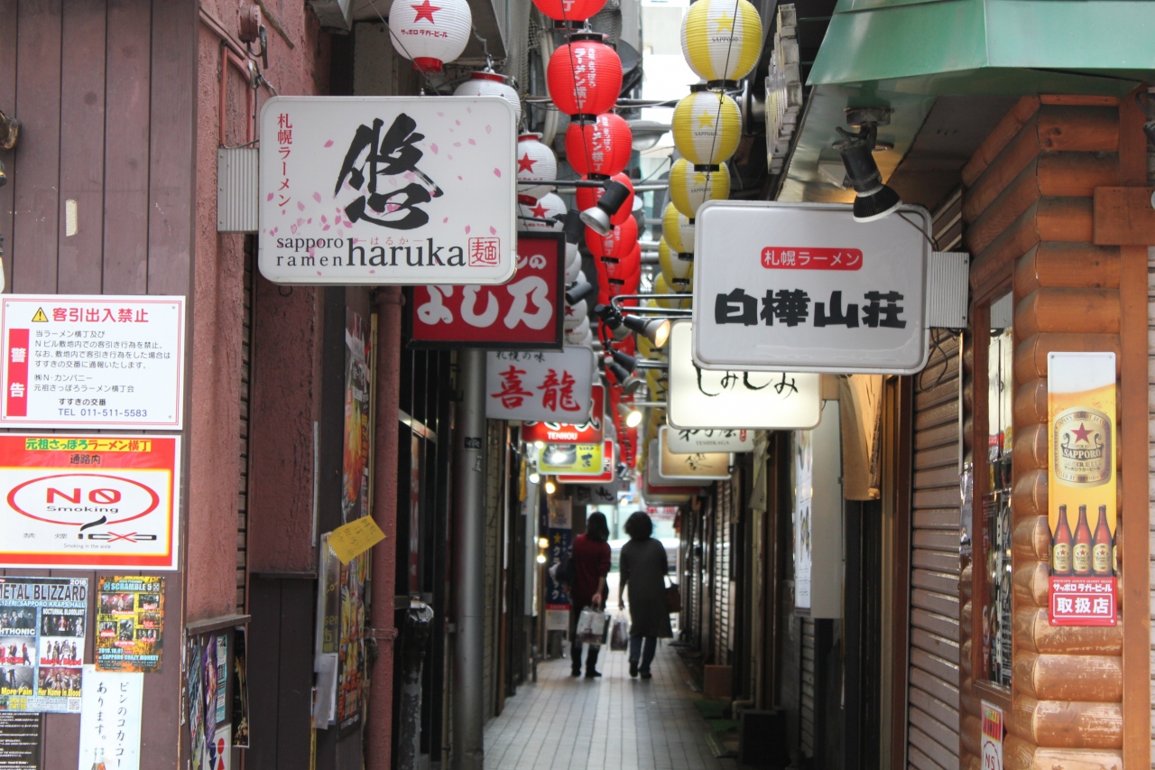 ススキノにある細い小路の両側にラーメン店が集まっていて、札幌ラーメンを広めた原点と言われています。