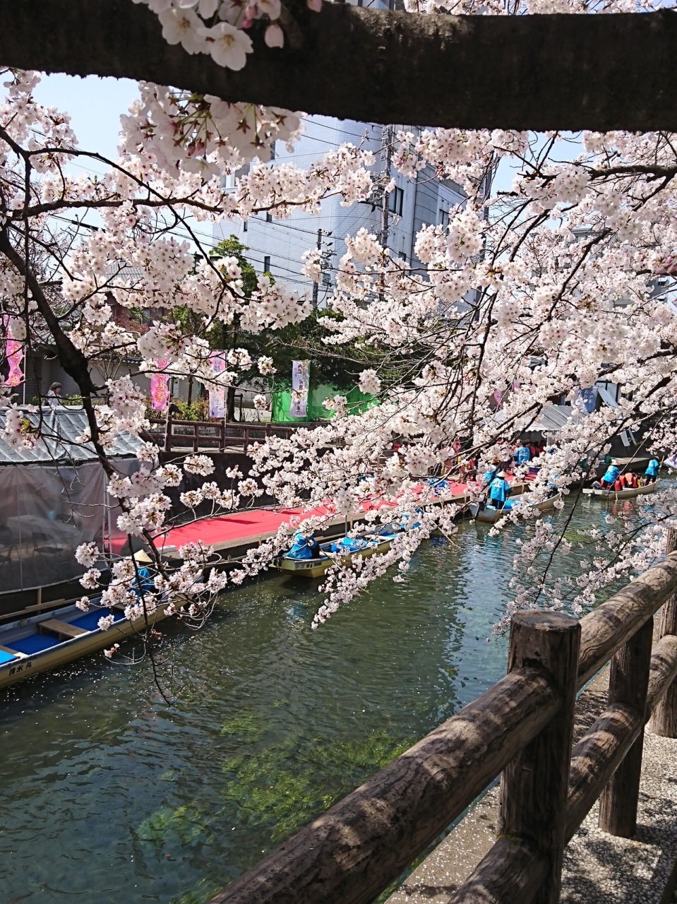 桜並木、とっても美しかったです。水門川の水もとてもキレイで、期間限定で川下りも催されています。