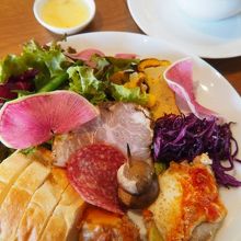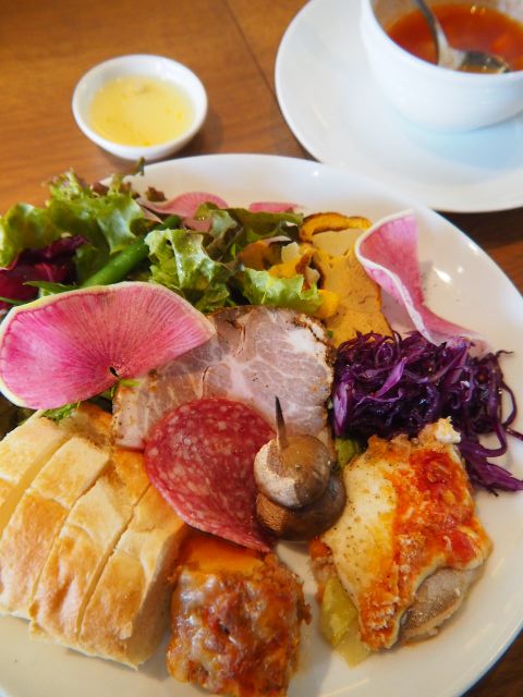 ワンプレートに、サラダ、スパニッシュオムレツ、サラミ、ローストビーフ、ラザニア、焼きマッシュルーム等、様々な料理が彩りよく盛られている。よくここまで盛られたな、と感心してしまう。いずれの料理もしっかりとこしらえられていた。