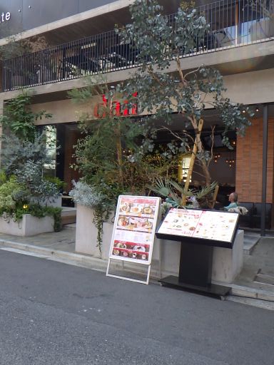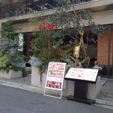 オープンテラス風の店舗で、道路に面する部分は壁が無く、店の奥まで見渡せる。