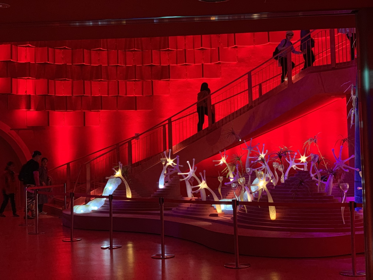 16人ずつ、ガイドと共に流れに沿って塔の地下から上部へ登っていきます。
