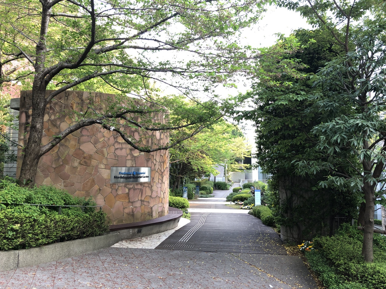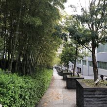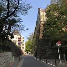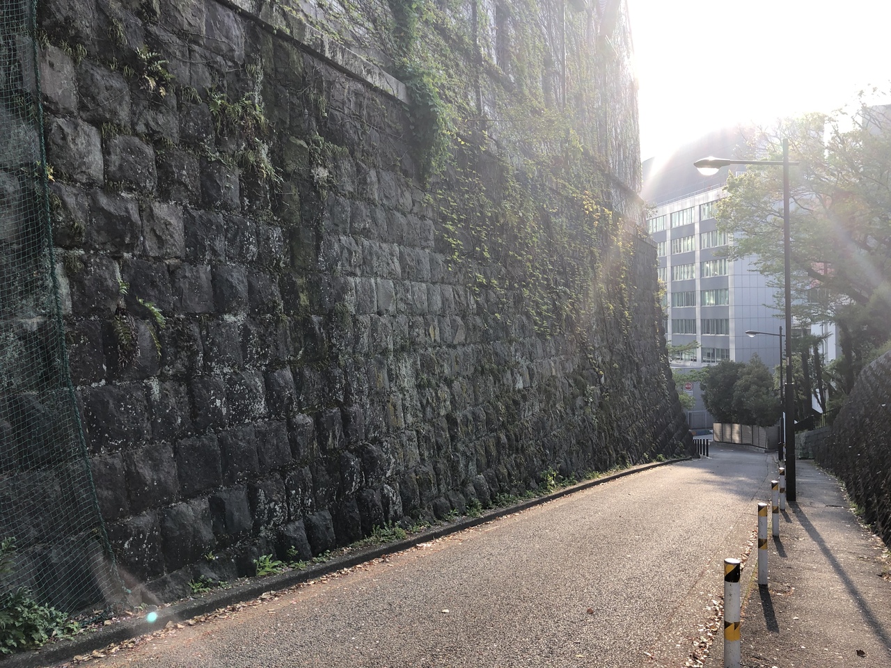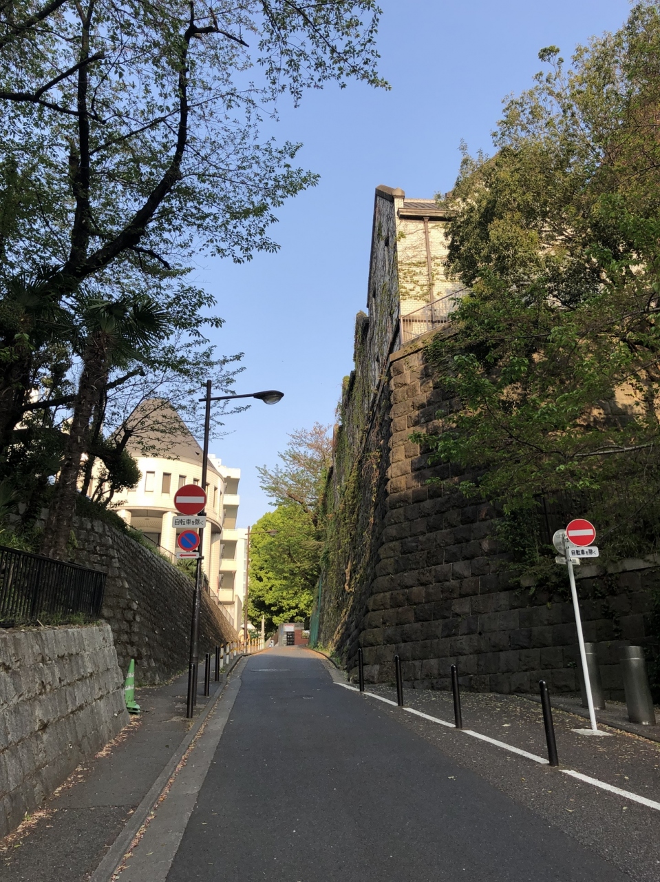 坂上には都立日比谷高校があり、登校を急ぎ学生鞄を抱えて駆け上がる風景から「遅刻坂」とも呼ばれているそうです。坂下にはプレデンシャルビルの綺麗に手入れされた中庭があり、竹藪が都会のど真ん中とは思えない雰囲気です。