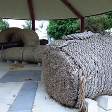 まず目を引くのは巨大な綱。那覇大綱挽で使用された綱が恭しく展示されています。