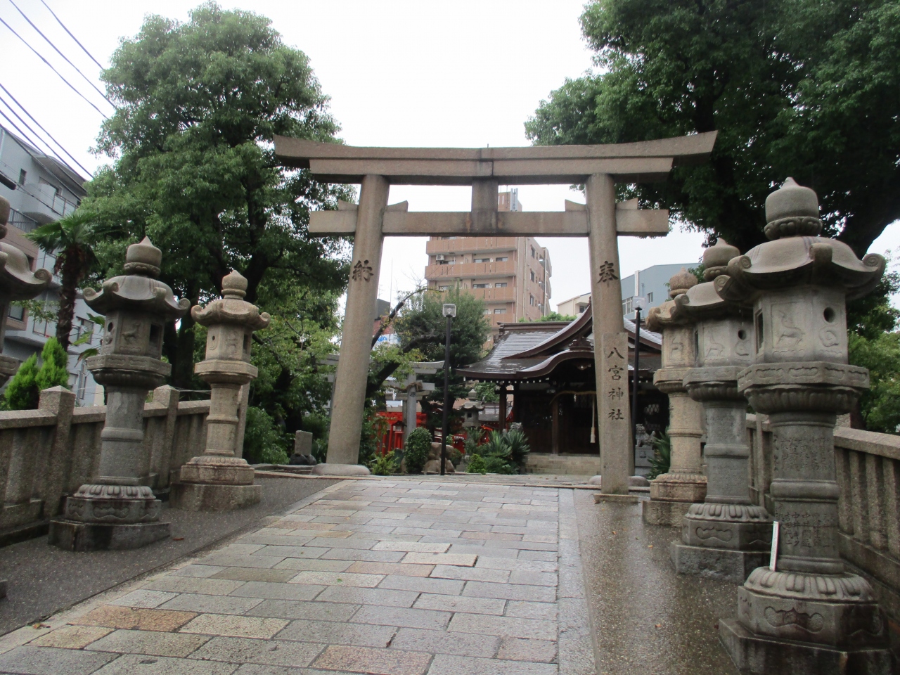 神戸は三宮ですが、神社は八宮神社まであります。こちらは、建物が少し朽ち果てたものもありますが、本堂までの参道には立派な灯篭が両側に立っていて、重厚な雰囲気です。境内には、もうひとつ白髪稲荷神社もあり、赤い鳥居がいくつも並んで壮観です。