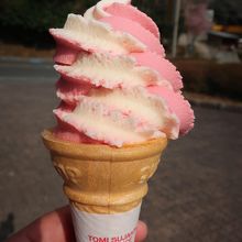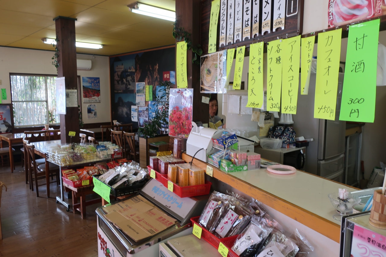 伊豆半島の先、石廊崎から松崎町に向かう136号線沿いにある展望所のある休憩所です。駐車場のある展望所からは駿河湾の海を見下ろす景観が綺麗です。そして休憩所は軽食堂になっており、お薦めはソフトクリーム。暖かい伊豆ではソフトクリームは美味。海の景色を見ながら食べるソフトクリームは、また別格です。