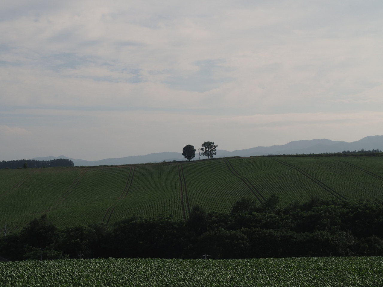 美瑛の丘の上に、仲良く立つ姿は微笑ましく、美瑛の景観を良く表しています。