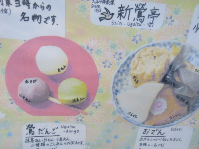 上野の恩賜公園内にあります。場所は動物園の入り口横、上野大仏を過ぎたあたりです。和風の建物で、中庭を眺めつつ休憩できるので、雰囲気は落ち着いていていいです。鶯団子が有名でこちらを注文。あんの種類が白・抹茶・小豆です。ほかにもドリンクやところてんなどもありました。夏はかき氷もあるそうです。