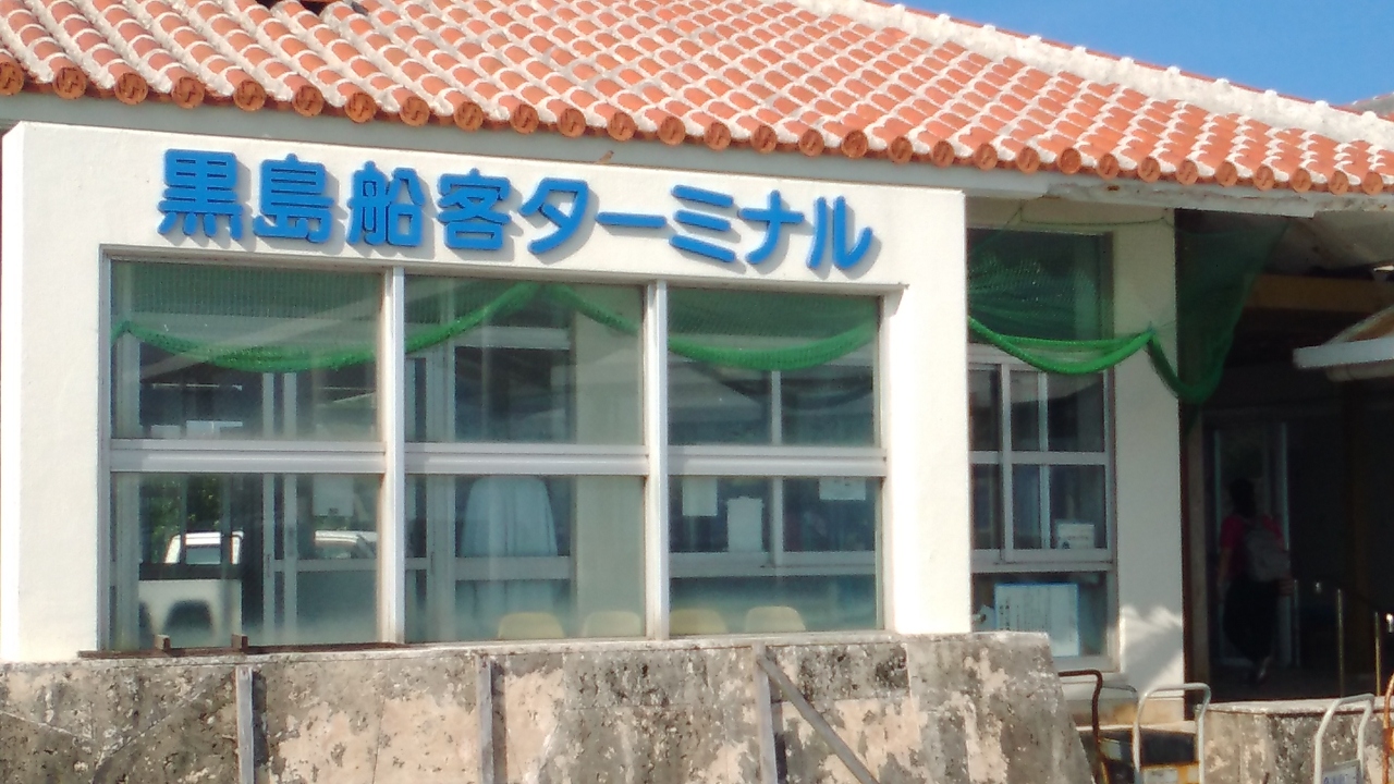 石垣島離島ターミナル発8時の八重山観光フェリーの船は黒島着8時25分、黒島発10時5分の安栄観光の船で石垣島に戻った。船客ターミナルの建物は新しく、綺麗だった。中には「まちやぁ」という土産物屋があった。港の前にはレンタサイクル(バイクも)店が2軒あるだけだった。