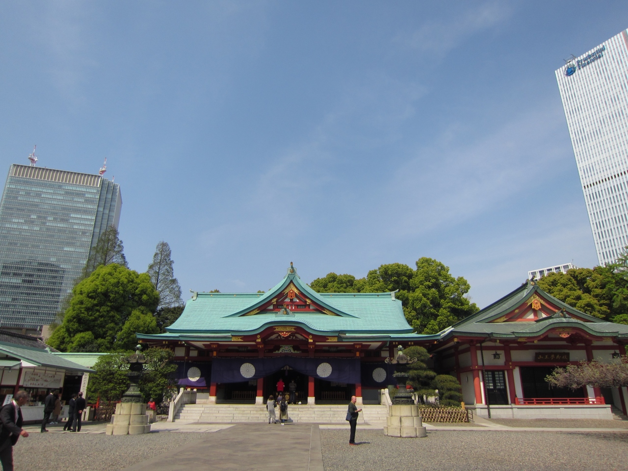 国会議事堂の近くにあります。境内に立つと両側に高いビルのある光景が見えて、何だか不思議な感じがします。神社の中は静かで厳かな雰囲気でした。社殿はとても豪華できれいです。出世のご利益があると言われているので、スーツ姿のサラリーマンがたくさん参拝していました。
