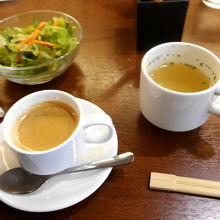 ランチのトマトスパゲティ キノコとタコのスパゲティだ.アルデンテでとてもおいしい スープ サラダ 付きで900円 大盛 150円 一人がおなか一杯というので大盛2つを3人(といっても同僚2人で1つを食べる)で分けた.ランチに付いたエスプレッソは100円 コーヒーがおいしいので全員がエスプレッソ2杯飲んだ.3人で3900円 この店は気に入っている.