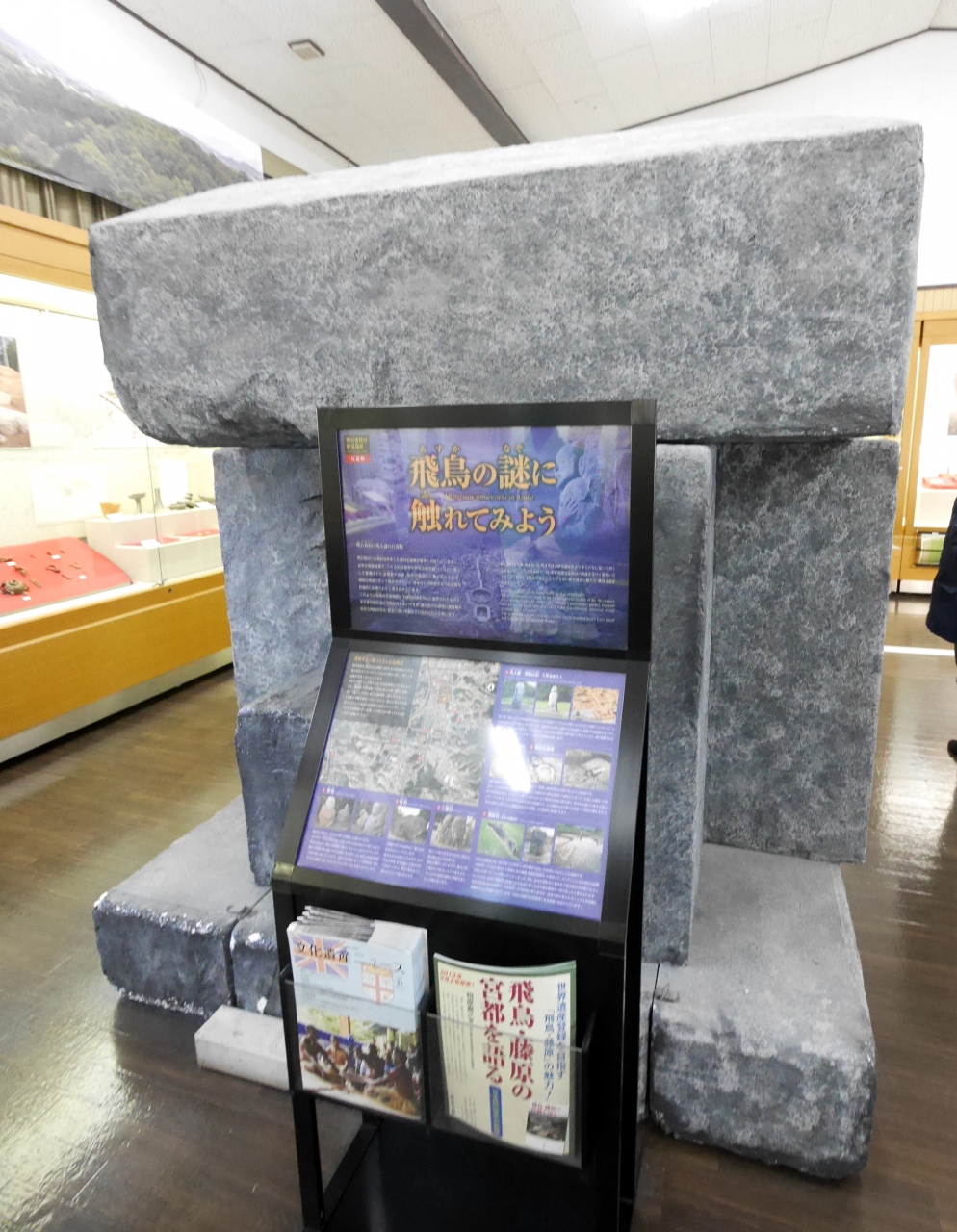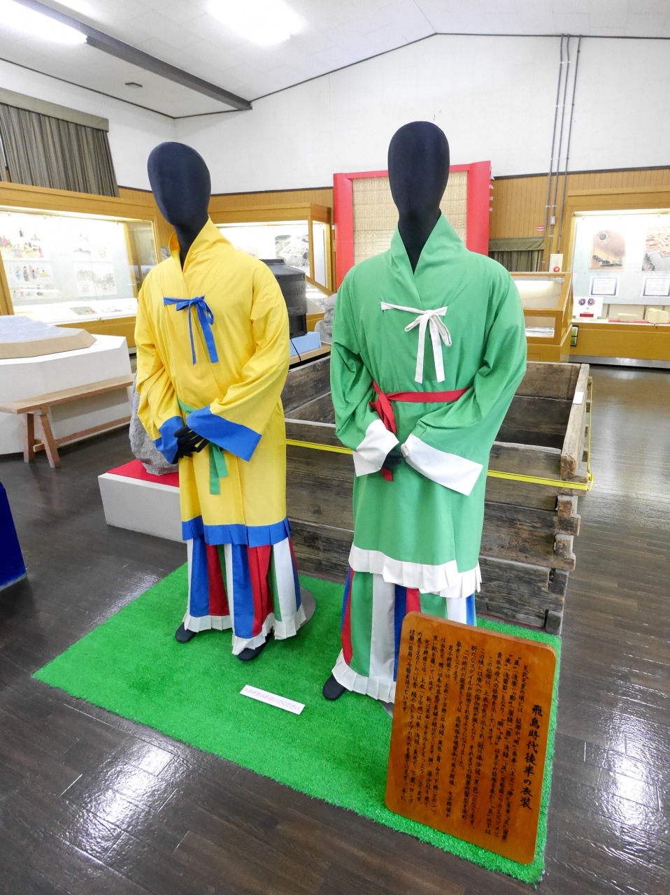 この間改装されたというが昭和の雰囲気の展示室.飛鳥時代の服装や,猿石の複製,キトラ古墳の石室模型などが目玉のようだ.少女漫画風の女性天皇像にはびっくりした.出土品もあるが全体には複製品も多い 明日香村の古代遺跡などを知るには寄ってもいいところだ 無料 農産物直売所 あすか夢の楽市の隣にある