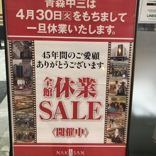 青森市中心部にある地場百貨店。1974年に開店したそうだが、建物の耐震性の問題などから2019年4月30日をもっていったん休業。隣接する駐車場を含め2022年に竣工される複合施設に入店するとのこと。