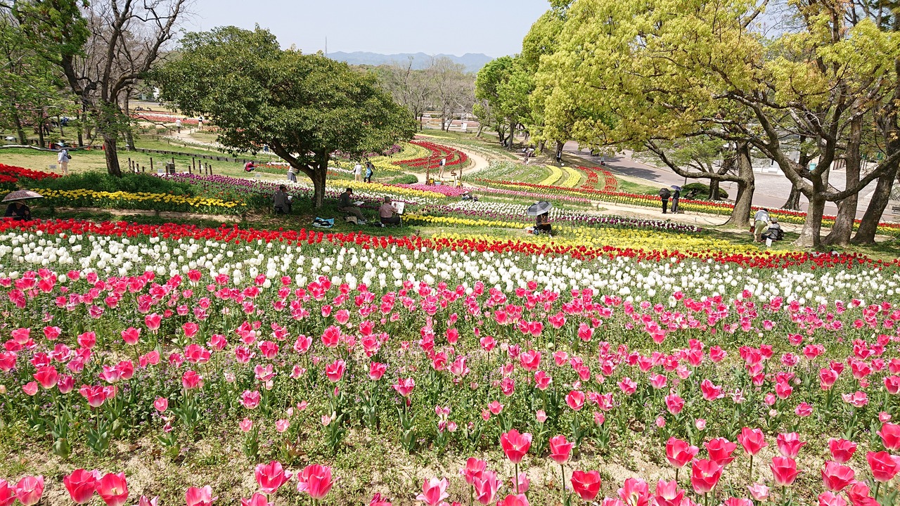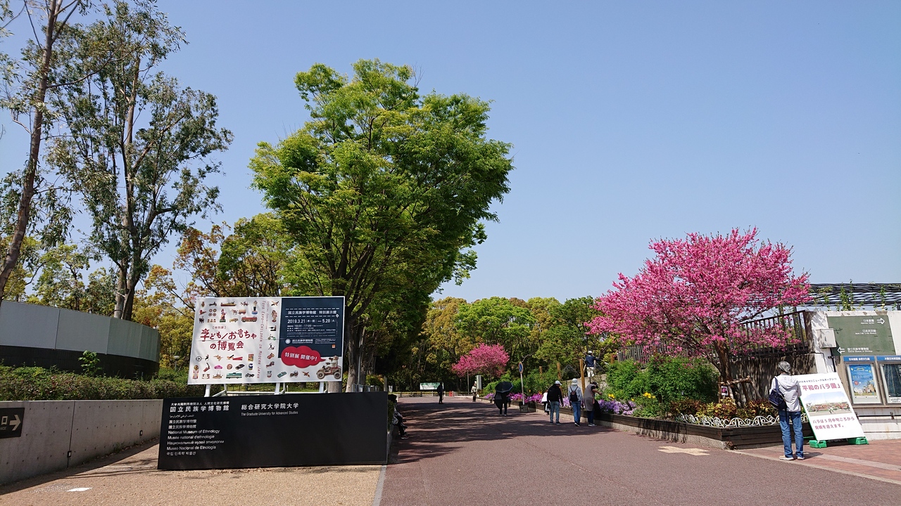 太陽の塔を見学するために公園に来ました。万博跡地を利用しているので敷地が広大で、モノレールで来ると万博公園駅、車で行くと駐車場も数か所あります。いつも何らかの花が咲いており、ソメイヨシノは終了していましたが、八重桜やチューリップ、ポピーなどは見頃でした。公園内を散策すると絵を描いている人たちや、レジャーシートを持ってきてピクニックしている人、ベンチでくつろぐ人など皆さんそれぞれ楽しんでました。太陽の塔の見学の後民族学博物館に行きましたが、特別展の他常設展も展示スペースが広く全部見て回ると疲れました。日本民芸館にも立ち寄って日本庭園に行きたかったですが疲れて諦めました。5月になればバラ園のバラが綺麗に咲きそうです。一日楽しめる公園です。